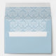 This wedding envelope features a minimalist design with a solid light blue background, creating a serene and elegant atmosphere. The centered text is presented in a clean serif font, emphasizing clarity and sophistication. With its simple layout and focus on typography, this envelope is perfect for couples seeking a refined and uncluttered look for their special day. Its formal style makes it ideal for weddings or other significant celebrations where elegance meets simplicity.