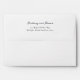 This wedding envelope features a clean, elegant design with a simple layout centered on a white background. The names are displayed in a stylish cursive font, while the address is written in a classic serif typeface, creating a sophisticated and modern look. The black text contrasts beautifully against the white backdrop, emphasizing clarity and formality. Perfect for formal occasions, this minimalistic design conveys a mood of refinement and timelessness, making it ideal for weddings or other special events.