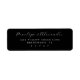 This elegant label features a sophisticated black background with crisp white text, creating a striking contrast. The design combines flowing cursive for names and clean serif fonts for addresses, offering a personalized touch while maintaining a formal appearance. Perfect for weddings or special events, this minimalist style emphasizes clarity and refinement, making it ideal for invitations or gift tags. Its timeless aesthetic ensures it complements any occasion with grace and simplicity.