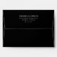 This elegant wedding envelope features a sleek, minimalist design with centered text on a solid black background. The clean, modern typography in white creates a striking contrast, emphasizing clarity and sophistication. Perfect for formal occasions, the layout is simple yet refined, making it ideal for weddings or official correspondence. Its contemporary style ensures a polished look that complements any event.