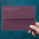This elegant wedding envelope features a sophisticated design with a deep maroon background and crisp, white serif typography. The layout is clean and balanced, with centered text that provides ample space for customization of names and addresses. Its minimalist style emphasizes simplicity and formality, making it perfect for weddings or formal invitations. The use of negative space enhances readability and adds to the overall polished look, ideal for creating a timeless and refined impression.