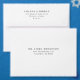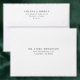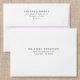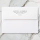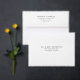 These wedding envelopes feature a minimalist and elegant design with a clean, white background and black serif typography. The layout is simple yet sophisticated, emphasizing ample negative space to highlight the centered text blocks. Perfect for formal correspondence, these envelopes convey clarity and refinement, making them ideal for weddings or other special occasions where a touch of classic style is desired.