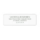 This return address label features a minimalist and elegant design with centered text on a clean white background. The black serif font adds a touch of sophistication, creating a formal and refined look perfect for official communications or special occasions. The layout is simple yet stylish, emphasizing clarity and readability through ample negative space and balanced composition. Ideal for those who appreciate understated elegance in their stationery.