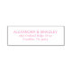 This elegant rubber stamp features a clean, minimalist design with centered text on a white background. The black serif font provides a classic and professional look, perfect for personalizing documents or correspondence. Its simple layout emphasizes clarity and readability, making it ideal for formal use in various settings. The customizable nature allows you to easily imprint your name, address, or other details, ensuring a polished finish every time.