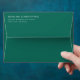 This wedding envelope features a minimalist design with a solid green background and crisp, centered typography. The classic serif font in white creates an elegant contrast against the deep green, emphasizing clarity and sophistication. Perfect for couples seeking a modern yet timeless look, this envelope is ideal for formal invitations or announcements, conveying a mood of understated elegance and refinement.