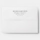 This wedding envelope features a minimalist design with a clean, white background and black text for a modern and elegant look. The layout is simple yet sophisticated, with centered typography in a crisp sans-serif font that emphasizes clarity and formality. Perfect for special occasions, the ample negative space around the text enhances its focus on the important details, making it ideal for weddings or formal invitations.