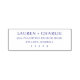 This elegant rubber stamp features a minimalist design with a clean, white background and black text for high contrast. The layout is vertically centered, showcasing customizable placeholder text in a classic serif font that conveys sophistication and formality. Perfect for personalizing invitations or documents, the stamp's simple yet refined style makes it ideal for weddings, formal events, or any occasion requiring an understated touch of elegance.