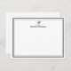 Flat note card design featuring a classic black script initial with a personalized name beneath framed in a double border, all on a white background.