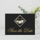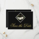 Share the exciting news with your friends and family with this elegant and chic floral black monogram with gold lettering Save the Date flat card. This design features customizable monogram letters with a floral design on the front. Personalize the color, font, text, and style on the back.