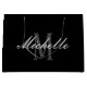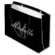 Elegant monogram large gift bag. Black with grey block monogram and white script name text.