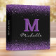 Elegant Black Monogram Purple Glitter 3 Ring Binder