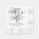 A timeless wedding napkin featuring "Mr. and Mrs." in ornate flourished black script on a crisp white background. The couple's names and date appear below in clean sans serif type, creating a classic monogram detail. Versatile enough for any wedding color palette and perfect for reception tables, cocktail service, or farewell stations. All text is customizable.