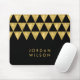 Elegant black mouse pad featuring chic faux gold triangle pattern that you can personalize with your name.