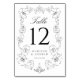 Elegant Black Ornate Floral Frame Wedding Table Number