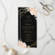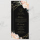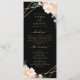 Here's the perfect program for your upcoming wedding. If you love black with gold and florals, here is your perfect match. This design features elegant peonies and rose buds in shades of blush peach and cream outlined in faux gold foil, together with a faux gold foil geometric shape encircling your wedding program details with a background of black on the front and back. All text is easily personalized using the template fields provided. Check out the collection for complementary wedding suite products. If you have a design question or would like to see this design on another product, please feel free to contact me at jschmidtdesignworks@gmail.com. Design © Judith Schmidt.