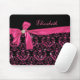 Elegant Black Pink Damask Diamond Bow Custom Mouse Pad