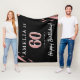 Elegant Black Pink Watercolor 60th Birthday Fleece Blanket