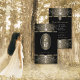 Make a lasting impression with this luxurious and elegant business card design featuring fine filigree ornate ornaments with diamonds and sparkling stars. The borders are shimmery gray - beige with gold decor on a black background.