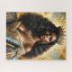 This queencore puzzle features artwork of a gorgeous dark-skinned woman wearing a crown, ornate jewelry, and an elegant, 19th-century style gown. She has thick, long, wavy hair and is looking off to the side as she poses for the oil painting portrait! Lots of gold and blue in this melanin-rich royal-core image.