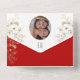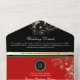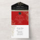 This elegant all-in-one wedding invitation features a bold red and black palette with delicate vintage gold floral accents and a monogrammed photo flap. Stylish and convenient, this format includes space for your wedding details, RSVP section, and guest photo. Perfect for couples planning a formal, dramatic, or evening wedding with a luxurious, high-contrast aesthetic.