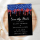 Elegant Black Red Blue Glitter Drips Save The Date Postcard