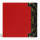 All purpose Avery three ring binder, done in red, with a black spine and black border, on the front and back. Graphics of pretty gold tone flourishes decorate the black border, on the front and back covers. Text in golden brown and black is ready to personalize to read what you want. Great for home, school, or office. Inserts and pages sold separately at your local discount, office supply, or craft shops.