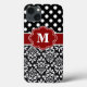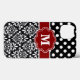 Show off your style in a fun way with this classy red and black dots and damask monogram phone case.