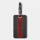 Image of elegant black and red leather vintage look with stitches connecting 2 colors of leather. Customizable language-tag template.