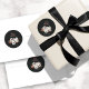 These elegant 3" x 3" classic round wedding stickers feature a beautiful floral design in black, rust and ivory on a black background with placeholders for the bridal couple first names and wedding date.