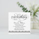 Elegant and chic milestone birthday party invitation features a calligraphy script heading with custom text and damask / striped border detail. Square design. Black and white color scheme.