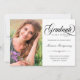Announce your college graduation to your family and friends in style with this custom calligraphy photo announcement card. This modern typography design template features your photo on the left and to the right elegant black script typography that reads "Graduate Class of 20XX" with your name, honors, school and date to personalize decorated with a delicate floral rose divider. Congratulations on your graduation! Designed by Susan Coffey.