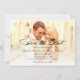 Timeless and refined, this save the date features sweeping black calligraphy script across a soft full-bleed couple photo, with wedding details in elegant mixed typography below. A delicate gold dot pattern on the reverse adds a subtle, luxurious finishing touch. All text is fully customizable including names, date, location, and website.