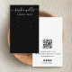 Elegant script font with swashes. QR code on backside Stylish earring display holder with two printed hole "markers" - these are not real holes.
