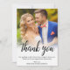 Elegant Black Script Bride Groom Wedding Photo Thank You Card