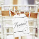 DOUBLE SIDED - This beautiful wedding reserved chair sign features elegant calligraphy script and a chic black and white color palette. This design is the perfect choice for an elegant wedding ceremony and/or reception. The unique die-cut shape is perfect for attaching to the back of a chair... Simply attach it to the chair with a beautiful ribbon!