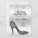 Elegant Black Sequin Stiletto, Silver Birthday Invitation