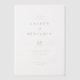 This elegant wedding invitation features a minimalist design with a clean white background, emphasizing simplicity and sophistication. The layout is structured with centered text in a hierarchical manner, using bold serif fonts for the names and date, while a cursive script adds a touch of elegance to the word "and." The black text on a white palette creates a classic look, perfect for conveying formality and refinement. Ideal for couples seeking an understated yet sophisticated aesthetic, this invitation sets the tone for a memorable celebration.