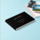 Create your own custom, personalized, simple, beautiful elegant real foil faux silver typography / script / font / calligraphy on black, red hearts, wedding / anniversary guestbook, featuring cover made from premium paper enhanced with luxurious velvet cover lamination. The back features the couple's names with their initials in real foil faux silver on a red heart. Simply type in bride and groom's or wife and husband's names, the wedding / anniversary date, and the couple's initials. to customize. A beautiful, elegant, special keepsake, to let your guests pen their thoughts and keep memories fresh like it was yesterday. Elevate your special occasion, capture heartfelt messages, well wishes, and memories with style and grace with this custom guestbook, personalized for you.