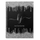 Elegant Black Silver Glitter Drips Monogram Script Notebook