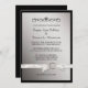 Plain white envelopes are included with paper invitations and will come to fit the invitation size you select. If you don’t need the envelopes, you may choose to not receive them by selecting the dropdown below "Envelopes" and choosing "None." If you’d like to have a design on your envelopes, you can browse all of these available envelopes to find the design that complements your Elegant Black Silver Ribbon Wedding Invitation.