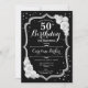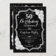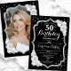 Elegant Black Silver White Photo 50th Birthday Invitation