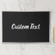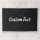 This black paper placemat has a faux (not foil) silver border. An elegant white script is in the center. You can edit the script to show your custom text.
