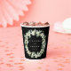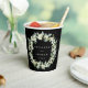Elegant, black personalized paper cups for wedding celebrations. A double-sided design, featuring hand painted snowberries and eucalyptus arranged into a beautiful botanical wreath. All text is fully editable so you can easily change/delete the message on one or both sides and alter the font style/color/size. Coordinating items available.