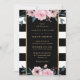 Elegant Black Stripe Pink Floral Wedding Invitation