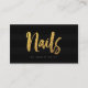 This stylishly elegant business card features black stripes background with the word "Nails" in faux gold brush script font. It is ideal for manicurists / nail technicians / nail salons.