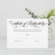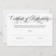 Elegant certificate of authenticity in black and white with a swirly calligraphy script.