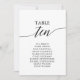 These elegant black table number 10 seating chart cards are perfect for a simple wedding. The neutral design features a minimalist card decorated with romantic and whimsical typography. The card prints on the front and back (double-sided).
