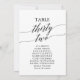 These elegant black table number 32 seating chart cards are perfect for a simple wedding. The neutral design features a minimalist card decorated with romantic and whimsical typography. The card prints on the front and back (double-sided).