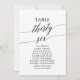 These elegant black table number 36 seating chart cards are perfect for a simple wedding. The neutral design features a minimalist card decorated with romantic and whimsical typography. The card prints on the front and back (double-sided).