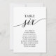 These elegant black table number 6 seating chart cards are perfect for a simple wedding. The neutral design features a minimalist card decorated with romantic and whimsical typography. The card prints on the front and back (double-sided).